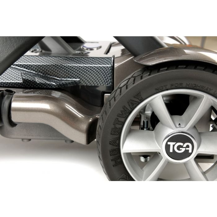 The TGA Minimo Folding Mobility Scooter is the ideal choice for those looking for a lightweight, easily stored and transported scooter. This lightweight mobility scooter is designed to fold to a highly compact size to allow for easy and convenient storage in the boot of a car. The folding mechanism can be operated with the use of just one hand and only takes a matter of seconds to complete meaning you can be off up and out with the minimal of fuss. When not in use, the scooter requires a minimal amount of storage space making this the ideal choice for those with limited space at home. The TGA Minimo Mobility Scooter has been manufactured with the front wheels closer together when compared to a conventional Mobility Scooter this helps to maximise manoeuvrability and allow for a small turning circle. Its large, puncture proof tyres promote user peace of mind and ensure a comfortable, smooth ride even when travelling over uneven terrain. On a full charge the TGA Minimo’s lithium ion battery will provide a large range of up to 10 miles (16 kms) with a top speed of 4 mph.